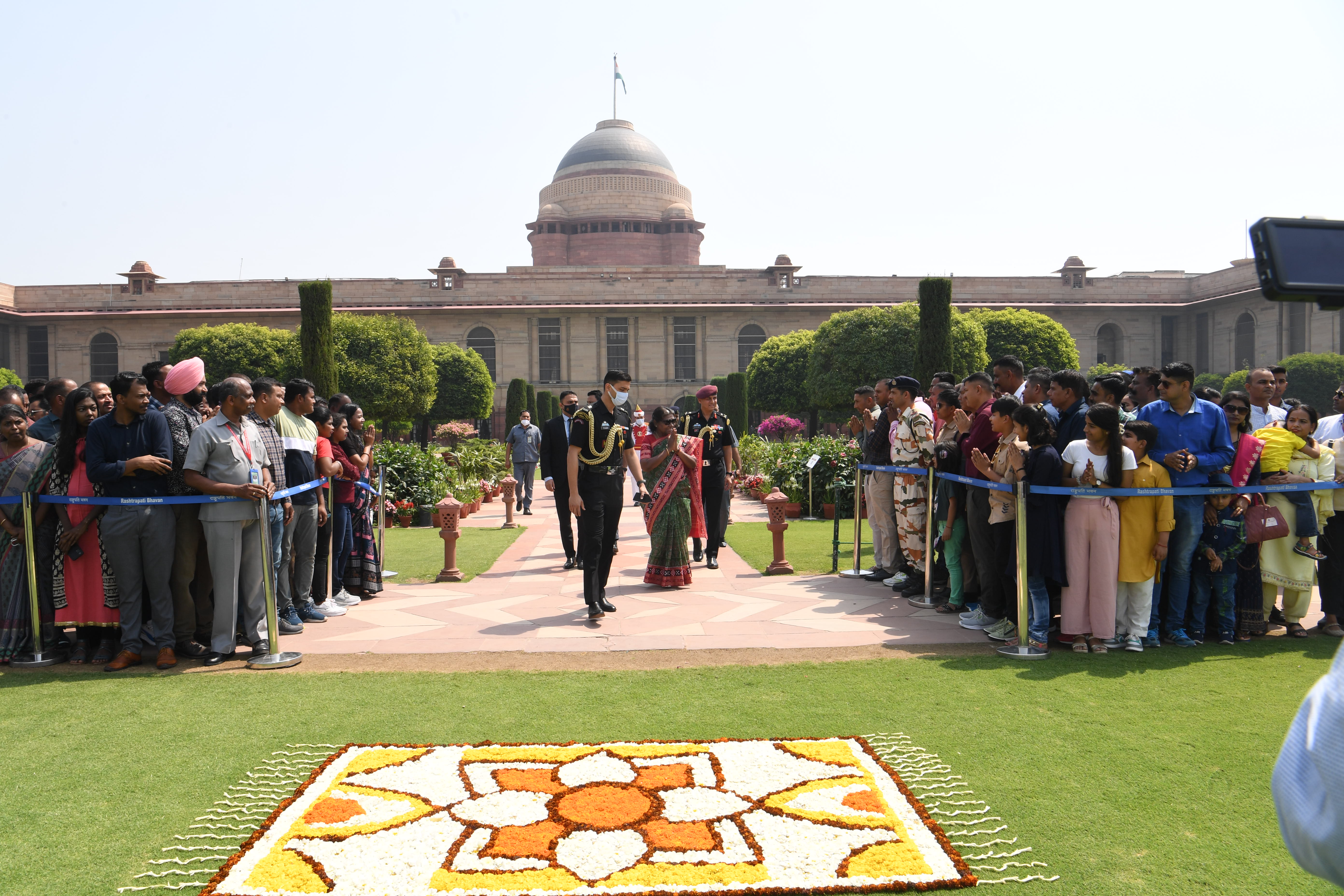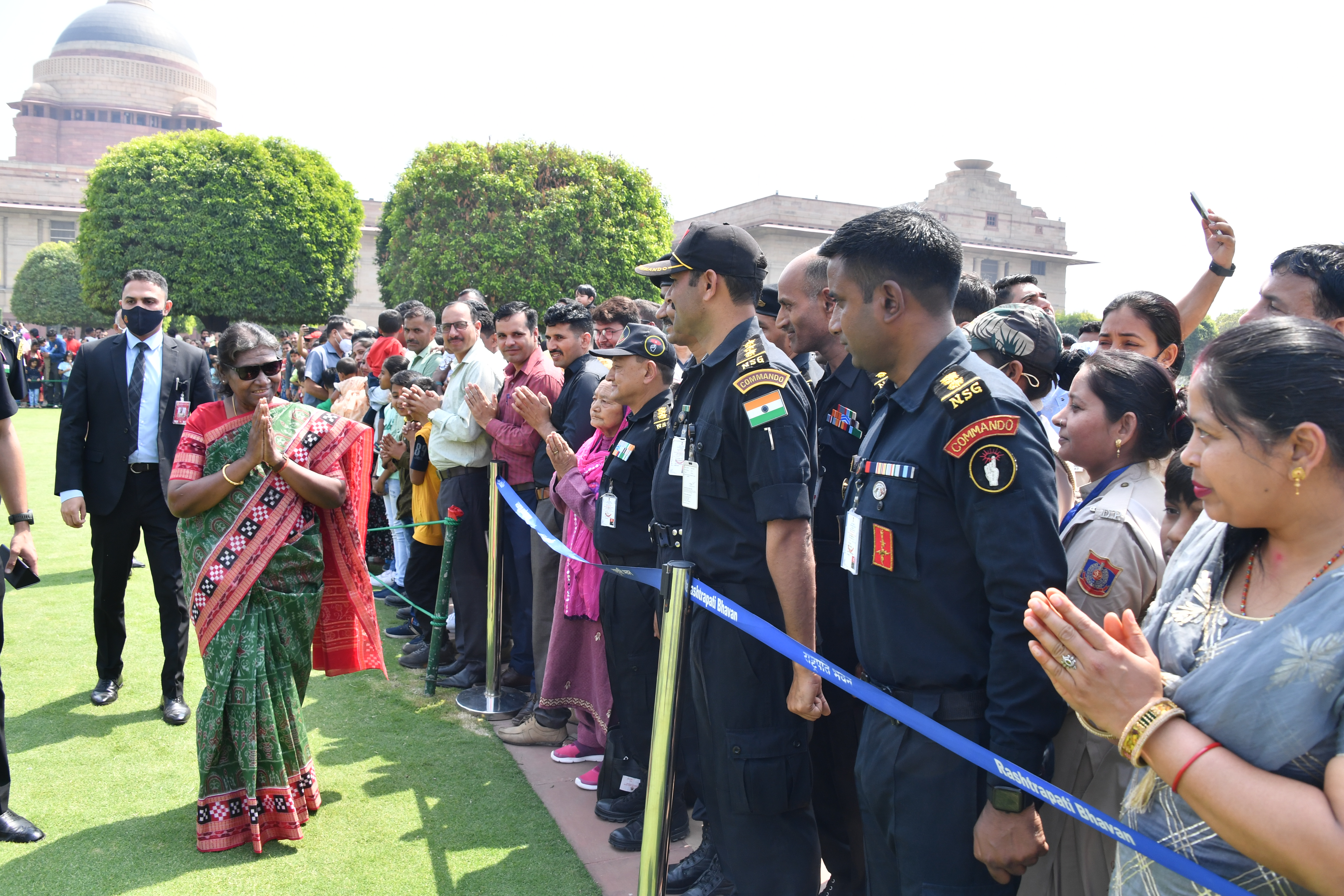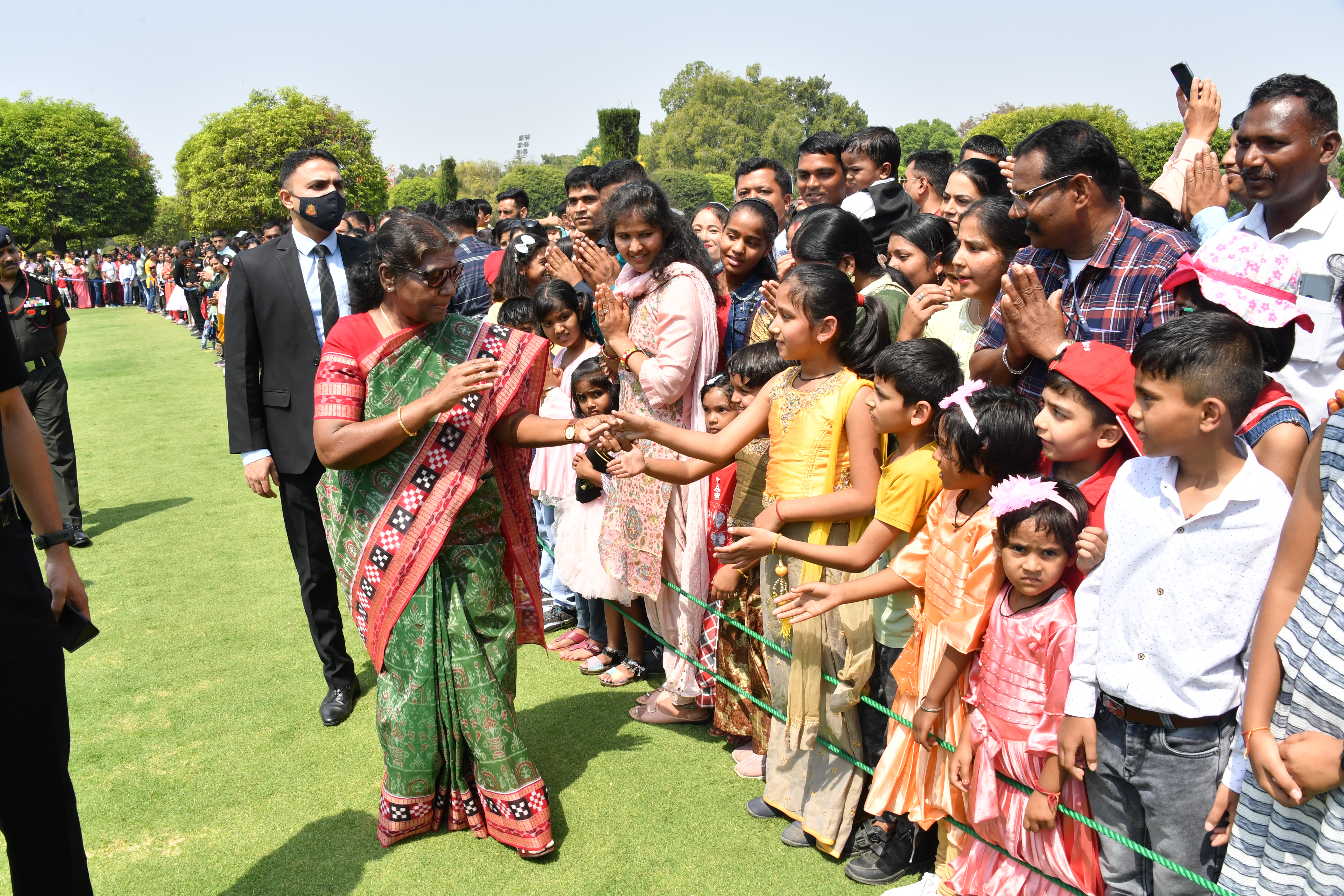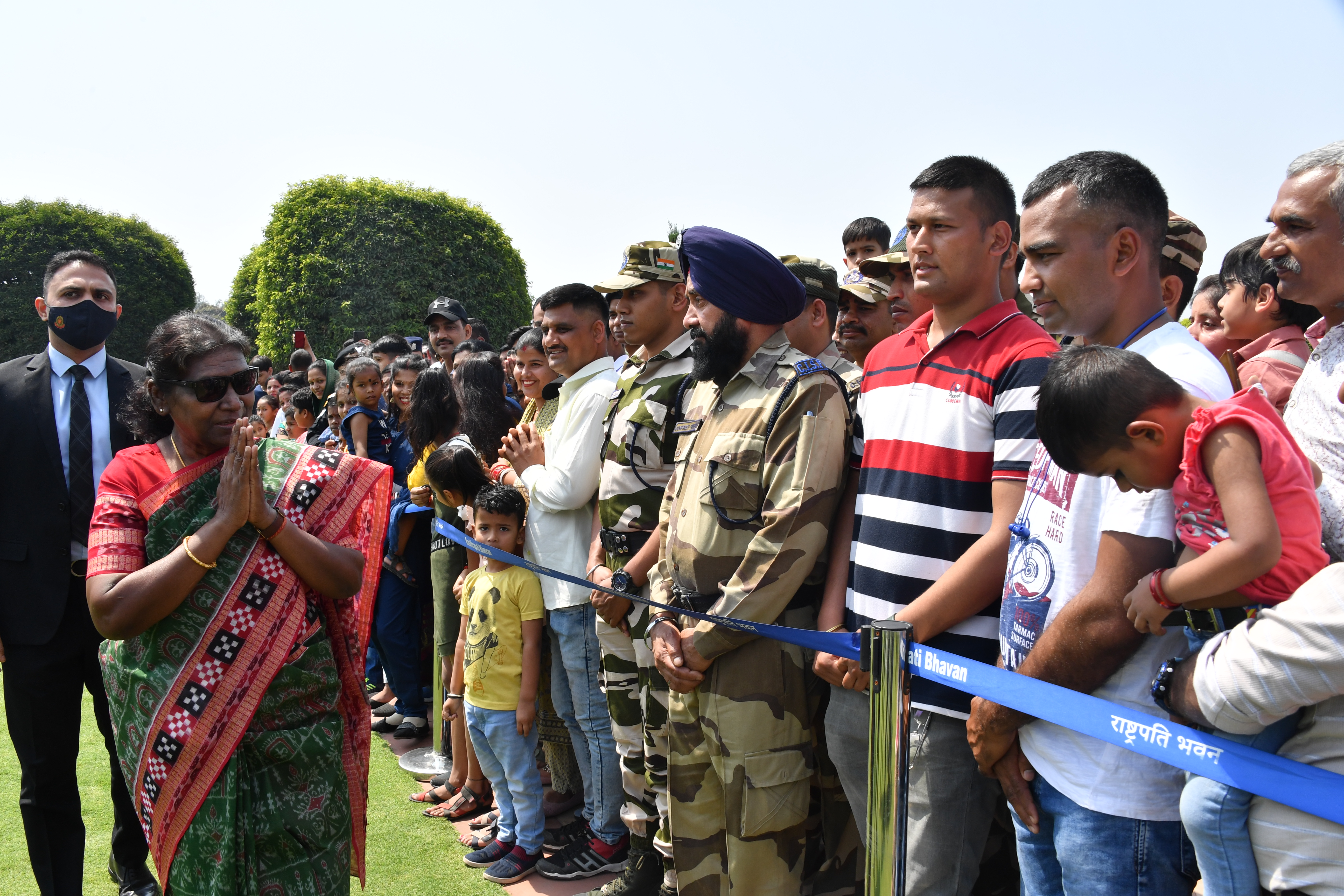 The President of India, Smt. Droupadi Murmu Interaction with the Personnel of Defence Forces and Personnel of Paramilitary Forces and Police at Rashtrapati Bhavan on March 30, 2023.