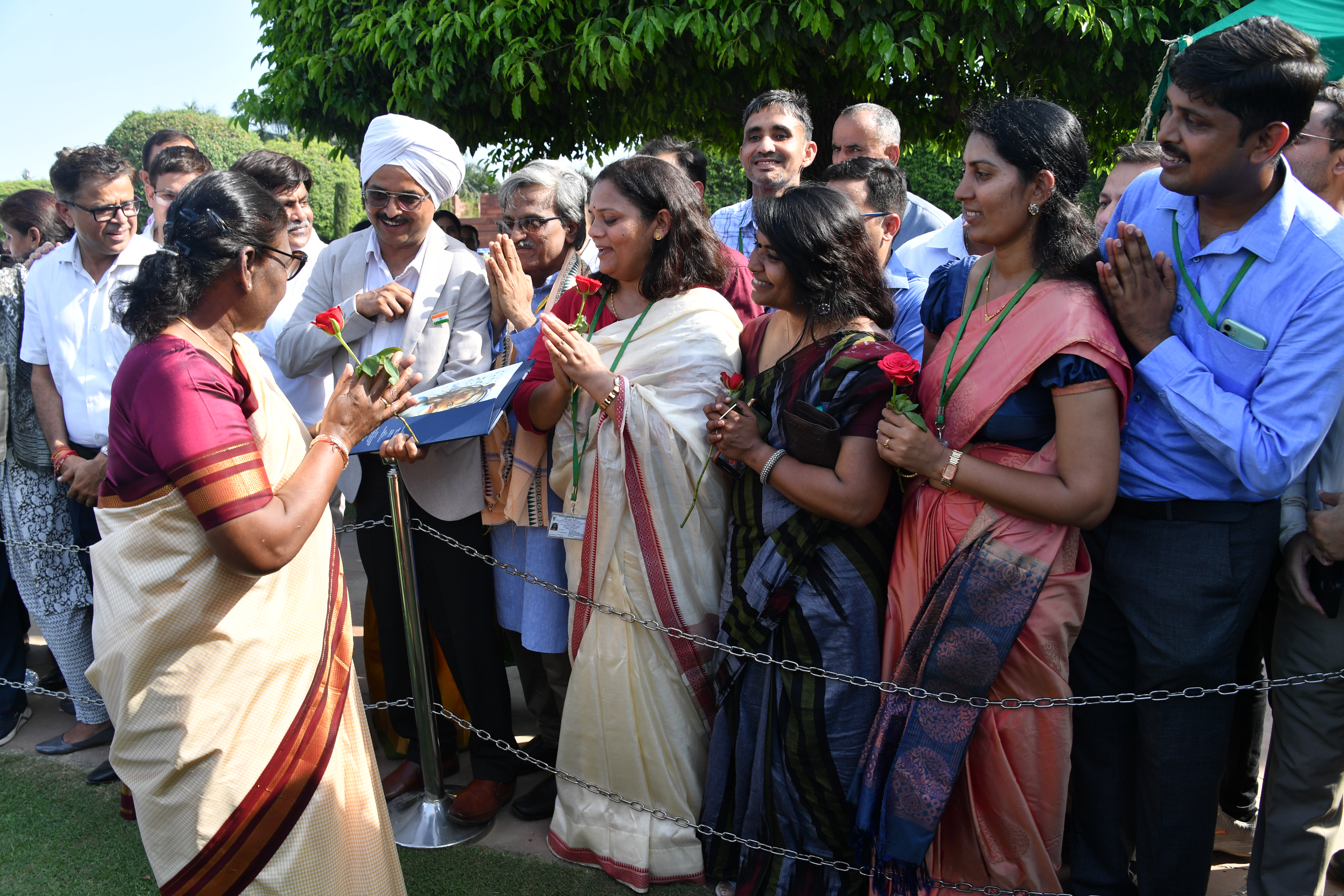 The President of India, Smt. Droupadi Murmu Interaction with the teachers invited to visit the Amrit Udyan as special invitees at Rashtrapati Bhavan on September 5, 2023.