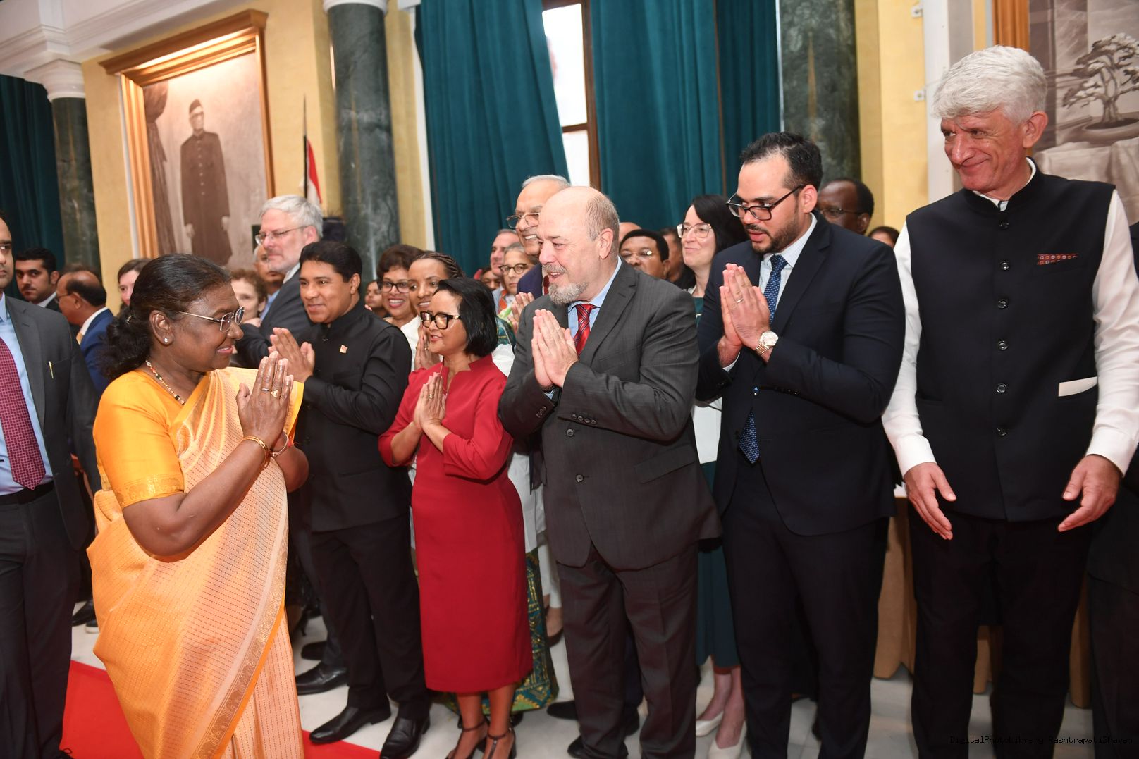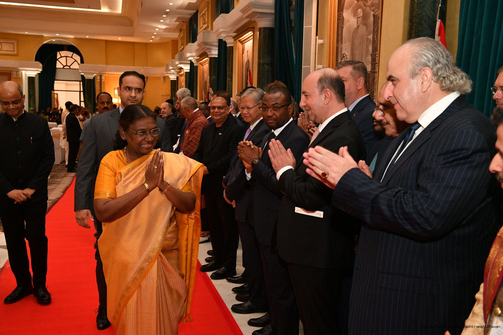 The President of India, Smt. Droupadi Murmu during 'At Home' Function organised on the occasion of 78th Independence Day at Rashtrapati Bhavan in New Delhi on Aug 15, 2024.