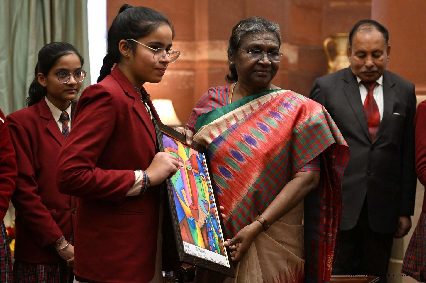 The President of India, Smt. Droupadi Murmu received New Year greetings from students of various schools at Rashtrapati Bhavan on January 01, 2023.