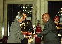 The High Commissioner-Designate of Namibia to India, HE Maj Gen Charles Dicson Ndaxu Phillip Namoloh presenting his credentials to the President of India, Dr A P J Abdul Kalam at the Ashok Hall of Rashtrapati Bhavan in New Delhi on April 16, 2003
