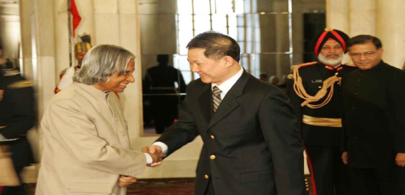The Ambassador-Designate of the People's Republic of China, HE Mr Sun Yuxi presenting his credentials to the President of India, Dr A P J Abdul Kalam at the Ashok Hall of Rashtrapati Bhavan in New Delhi on Jan 18, 2005