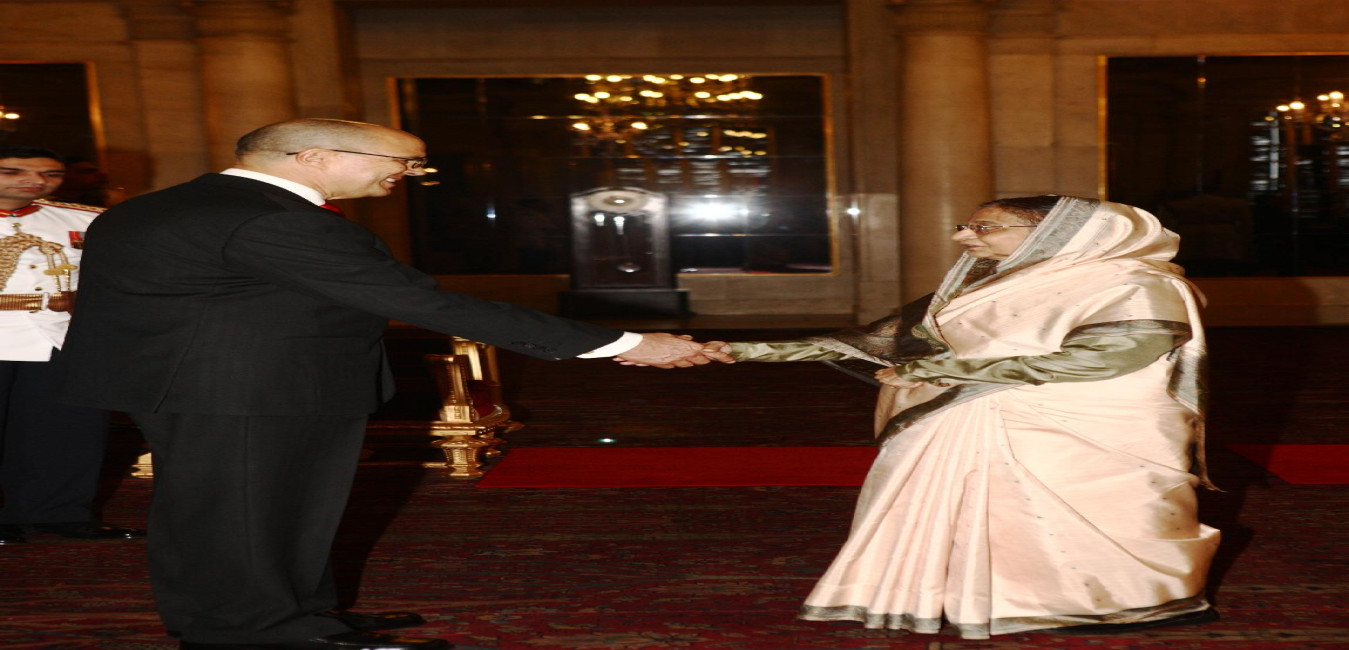 The High Commissioner of the United Kingdom, HE Mr James David Bevan presenting his Credentials to the President of India, Smt Pratibha Devisingh Patil at Rashtrapati Bhavan in New Delhi on Jan 12, 2012