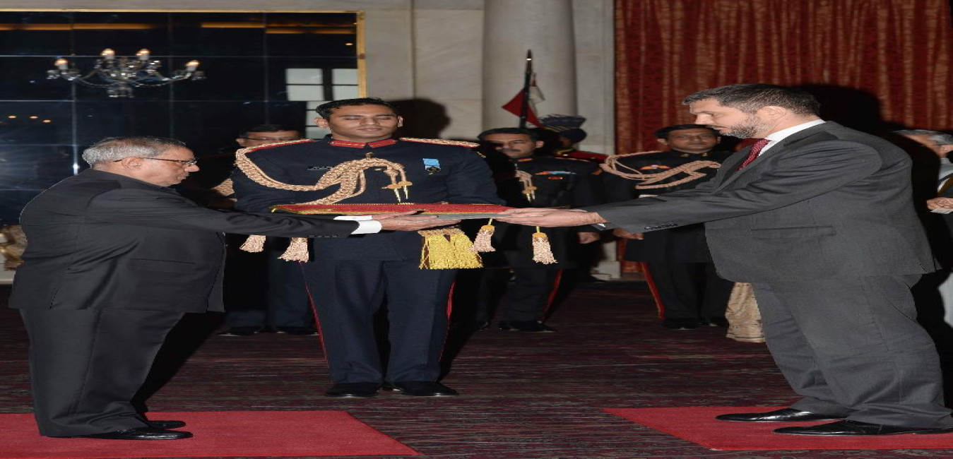 The President of India, Shri Pranab Mukherjee during the presentation of credential at Rashtrapati Bhavan, in New Delhi on January 16, 2015