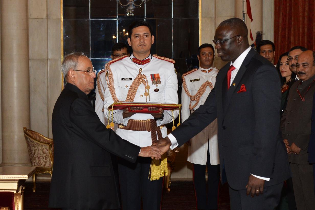 The Ambassador -designate of the Republic of Mali, HE Mr. Niankoro Yeah Smake presenting his Credentials to the President of India, Shri Pranab Mukherjee, at Rashtrapati Bhavan, in New Delhi on September 02, 2015.