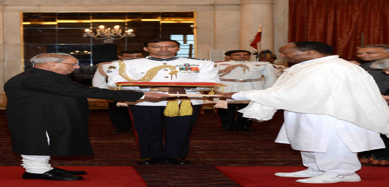 The Ambassador-designate of the Federal Democratic Republic of Ethiopia, His Excellency Mr. Asfaw Dingamo Kame presenting his credentials to the President of India, Shri Pranab Mukherjee, at Rashtrapati Bhavan on July 02, 2016.