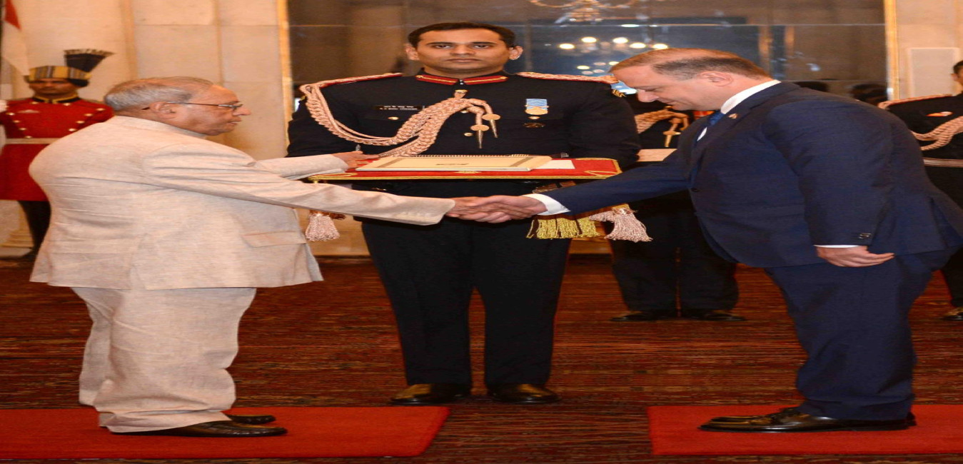 The Ambassador of the Republic of Turkey, His Excellency Mr. Sakir Ozkan Torunlar presenting his credentials to the President of India, Shri Pranab Mukherjee, at Rashtrapati Bhavan on March 29, 2017.