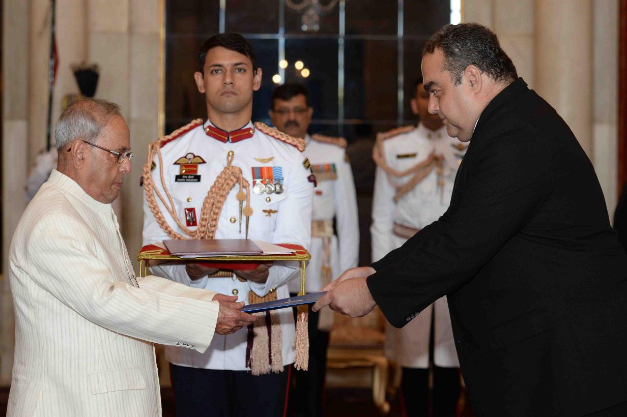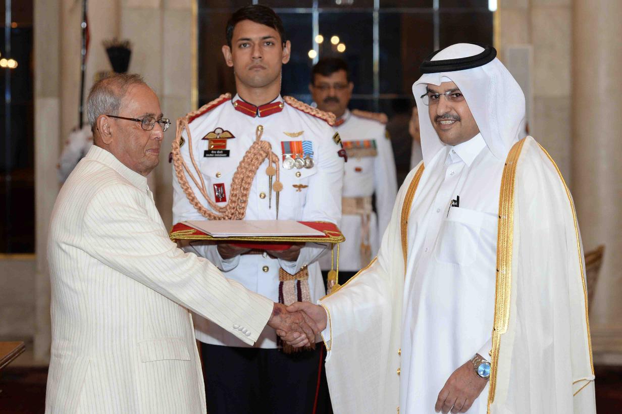 The Ambassador-designate of Qatar, H.E. Mr. Mohammed Khater Ibrahim Al-Khater presenting his credentials to the President of India, Shri Pranab Mukherjee, at Rashtrapati Bhavan on October 12, 2016.