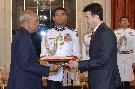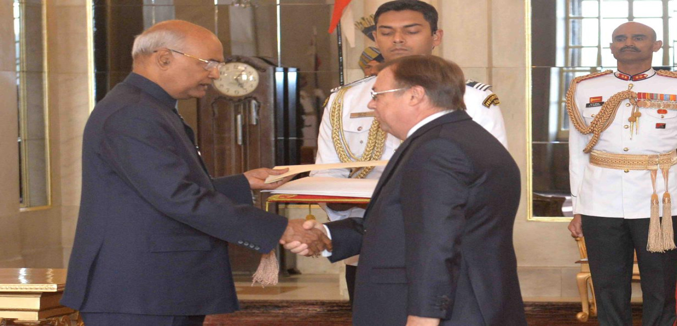 The Ambassador-designate of Iceland, H.E. Mr. Gudmundur Arni Stefansson presenting his credentials to the President of India, Shri Ram Nath Kovind, at Rashtrapati Bhavan on September 20, 2018.