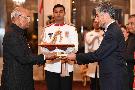 The Ambassador-designate of the Republic of Philippines, His Excellency Mr. Ramon S. Bagatsing, Jr. presenting his credentials to the President of India, Shri Ram Nath Kovind, at Rashtrapati Bhavan on June 25, 2019.