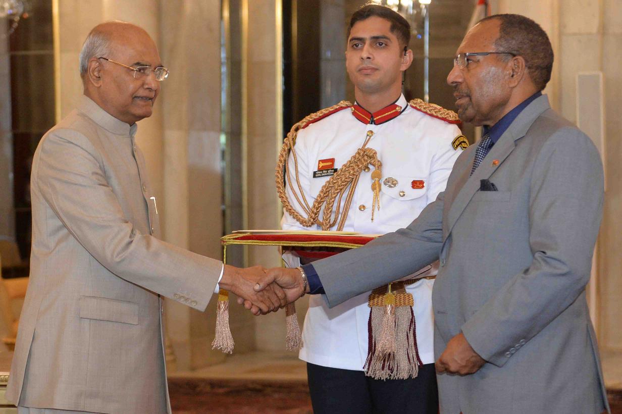 The High Commissioner-designate of Papua New Guinea, H.E. Mr. Paulias Korni presenting his credentials to the President of India, Shri Ram Nath Kovind, at Rashtrapati Bhavan on May 20, 2019.