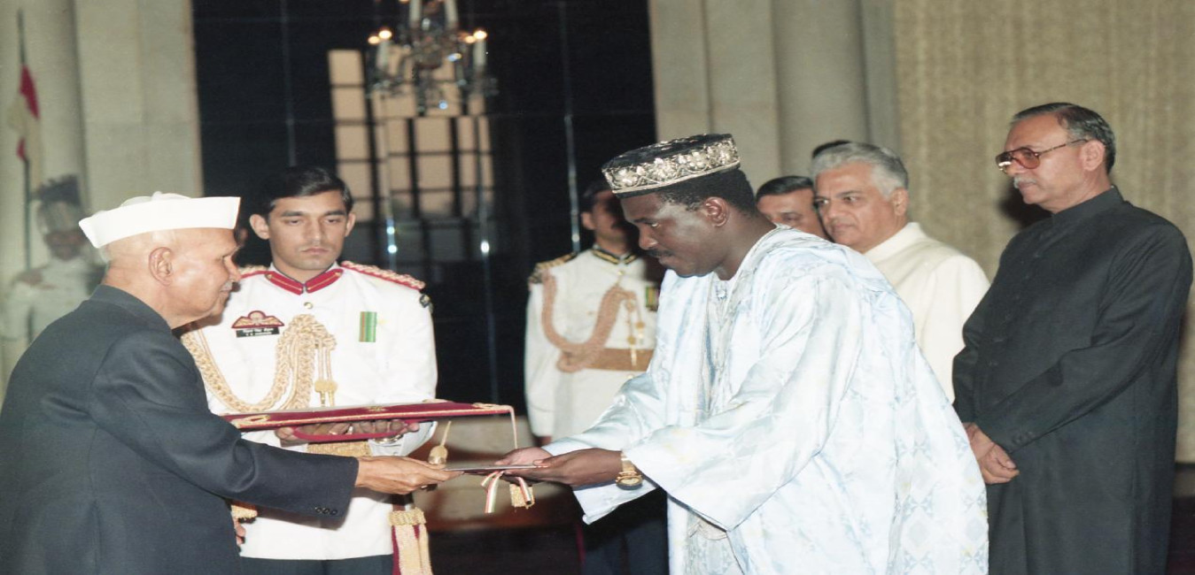 The Ambassador-Designate of the Republic of Guinea to India, HE Mr. Djigui Camara presenting his credentials to the President of India, Dr. Shankar Dayal Sharma at Rashtrapati Bhavan in New Delhi on June 17, 1997.