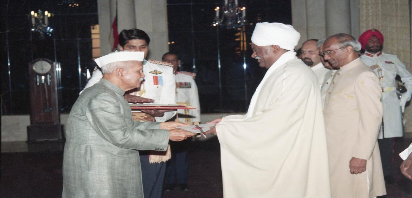 The Ambassador-Designate of Republic of Sudan to India, H.E. Mr. Awad Elkarim Fadlalla presenting his credentials to the President of India, Dr. Shankar Dayal Sharma at Rashtrapati Bhavan in New Delhi on September 27, 1996.