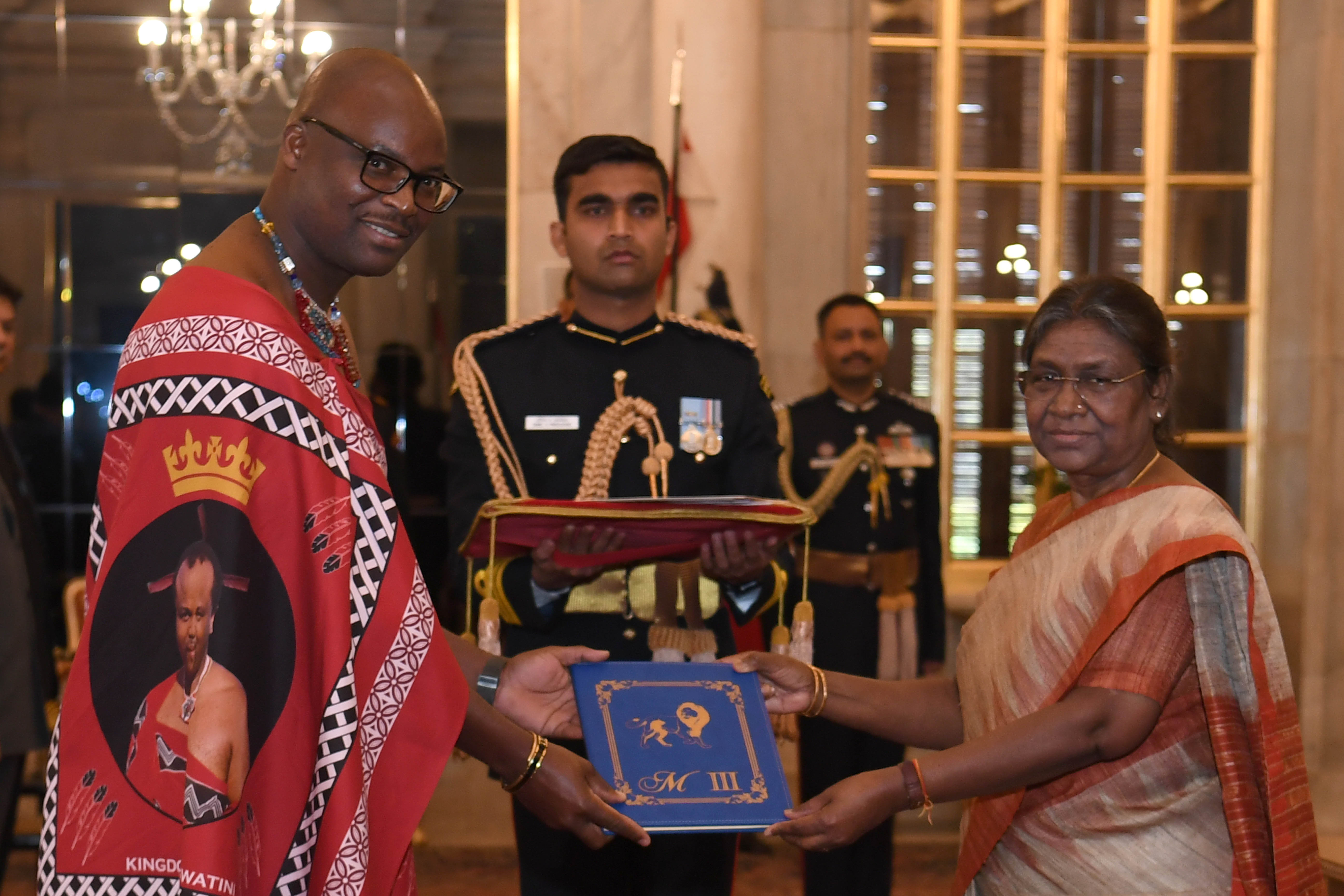The High Commissioner of the Kingdom of Eswatini, H.E. Mr. Menzie Sipho Dlamini presenting his credentials to the President of India, Smt. Droupadi Murmu, at Rashtrapati Bhavan on February 15, 2023.
