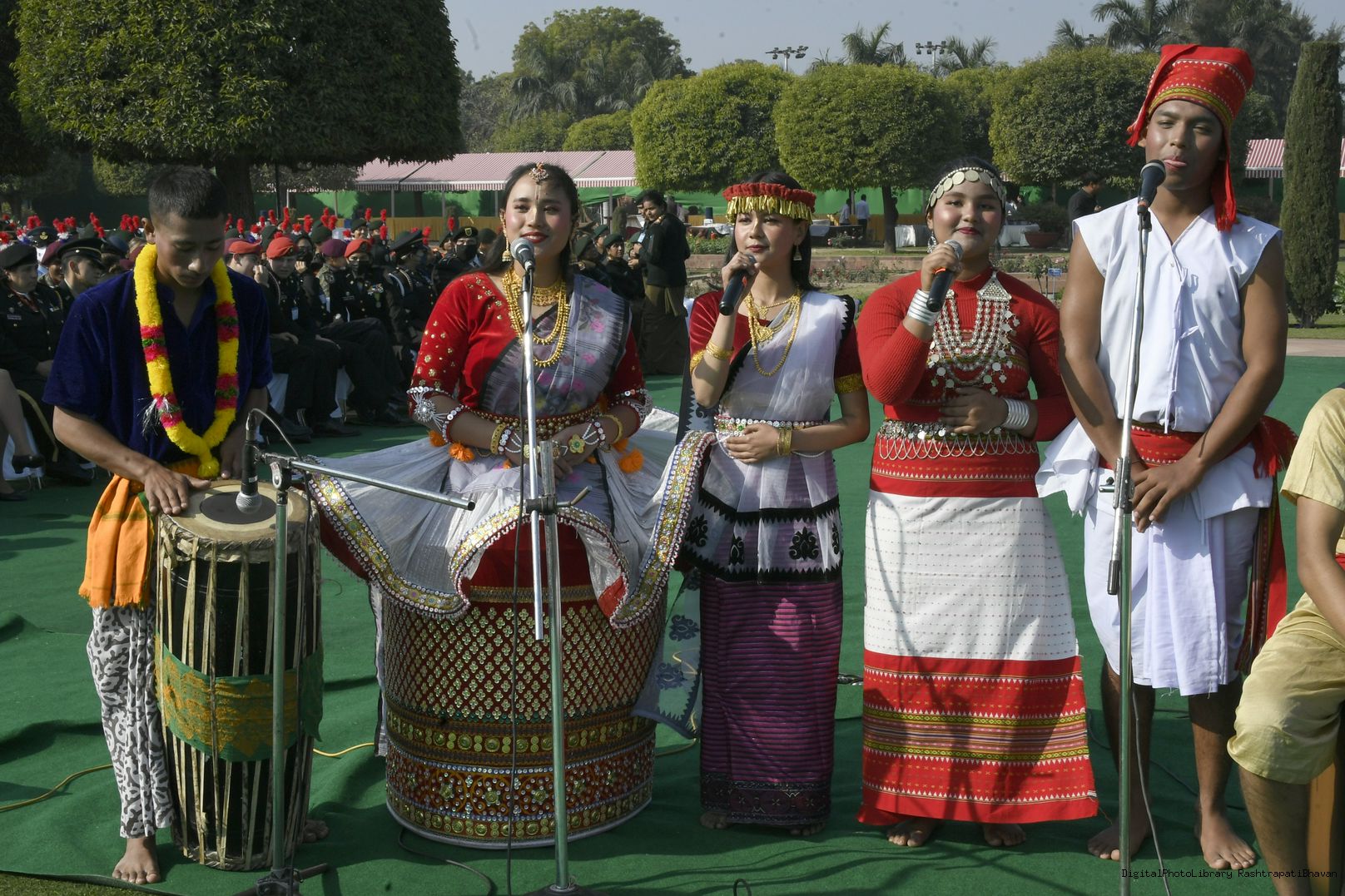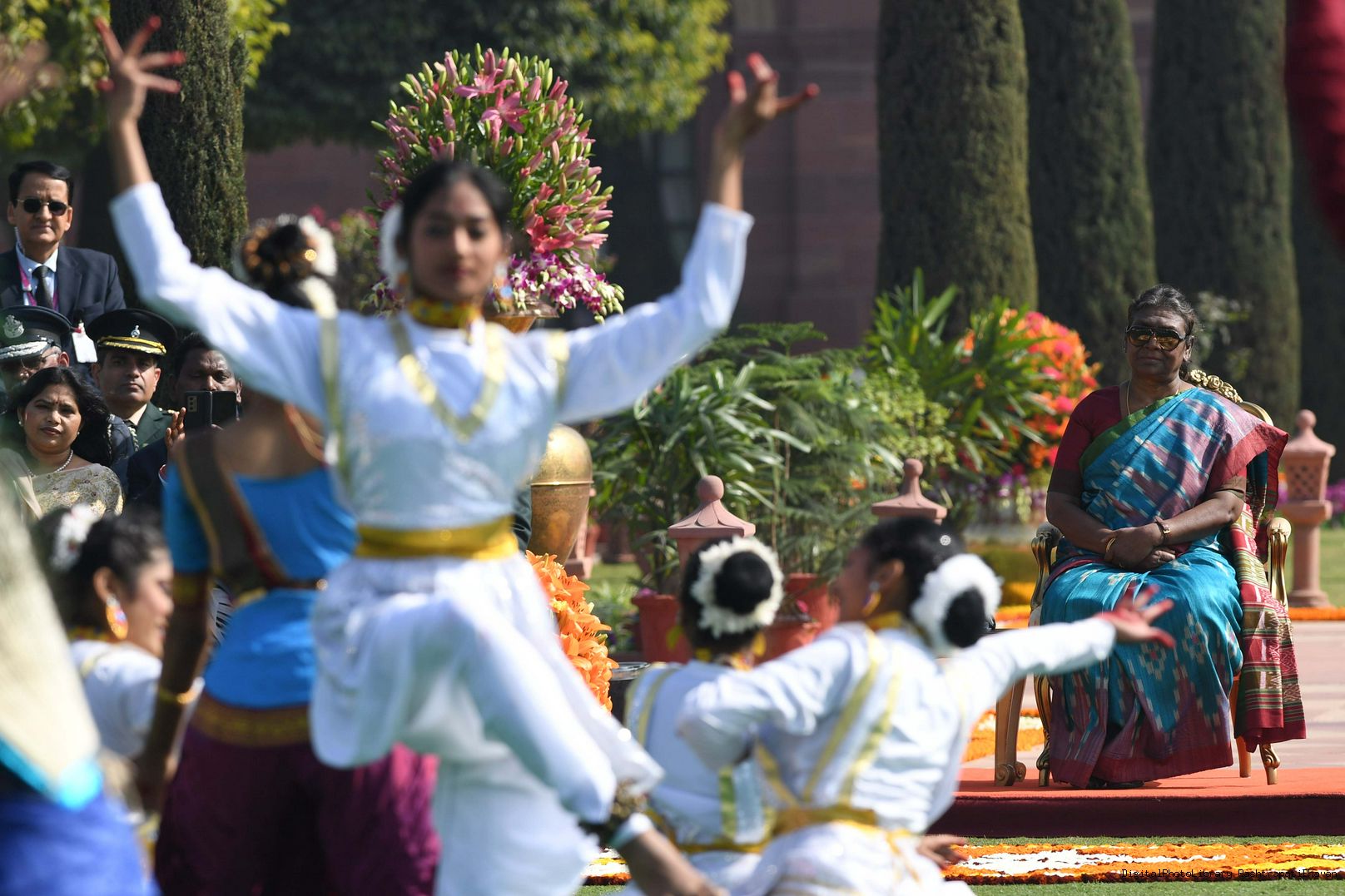 The President of India, Smt. Droupadi Murmu met tribal guests, tableaux artistes and tractor drivers, NSS volunteers and NCC cadets, officials and other participants of the Republic Day Parade 2023, at Rashtrapati Bhavan on January 27, 2023.