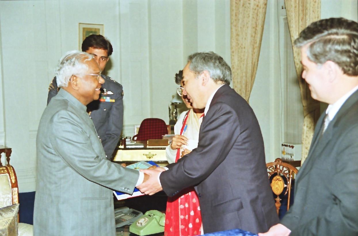The MP Former Australian Foreign Minister, Mr Gareth Evans with High Commissioner of Australian to India, HE Mr Robert Laurie calling on the President of India, Shri K R Narayanan at Rashtrapati Bhavan in New Delhi on Dec 15, 1998