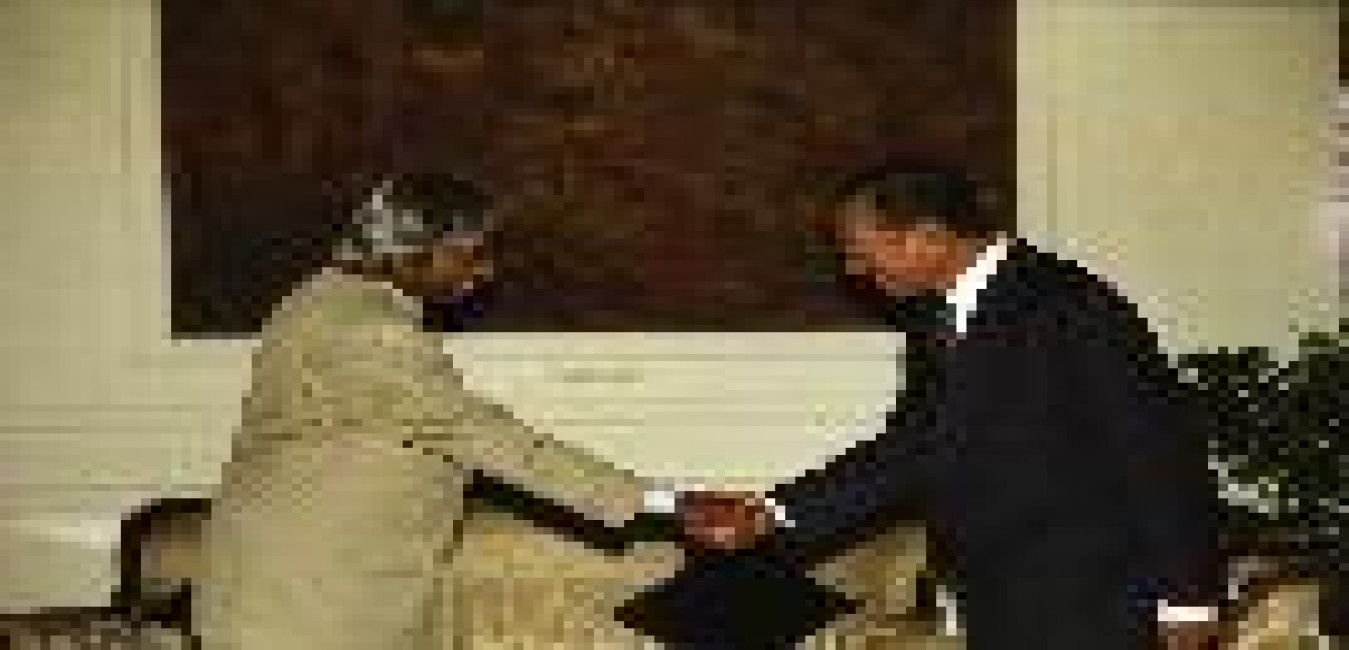 The Prime Minister of Lesotho, The Rt Hon Pankalitha Bethuel Mosisili and his wife Mosisili calling on the President of India, Dr A P J Abdul Kalam at the Morning Room of Rashtrapati Bhavan in New Delhi on Aug 06, 2003