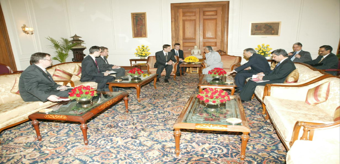 The Deputy Prime Minister of the Russian Federation, HE Mr Alexander Zhukov calling on the President of India, Dr A P J Abdul Kalam at the Morning Room of Rashtrapati Bhavan in New Delhi on Nov 19, 2004