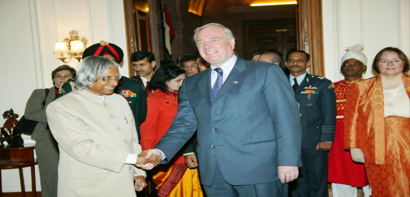 The President of the French Senate, HE Mr Christian Poncelet calling on the President of India, Dr A P J Abdul Kalam at Rashtrapati Bhavan in New Delhi on Feb 03, 2005