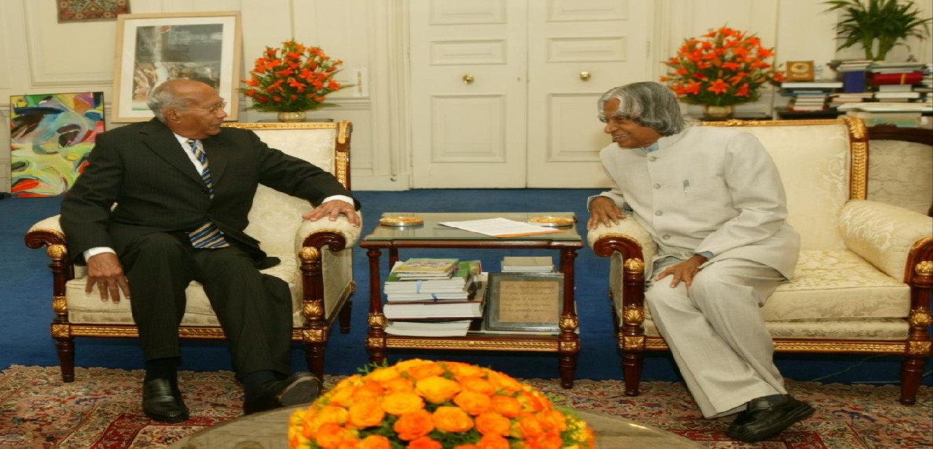 The President Trinidad and Tobago to India, HE Prof George Maxwell Richards calling on the President of India, Dr A P J Abdul Kalam at Rashtrapati Bhavan in New Delhi on Oct 29, 2004