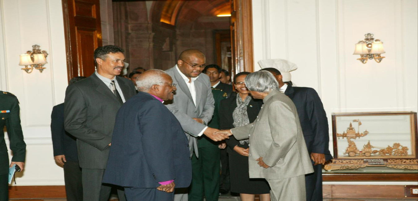The Archbishop Desmond Tutu of South Africa calling on the President of India, Dr A P J Abdul Kalam at the Morning Room of Rashtrapati Bhavan in New Delhi on Jan 31, 2007
