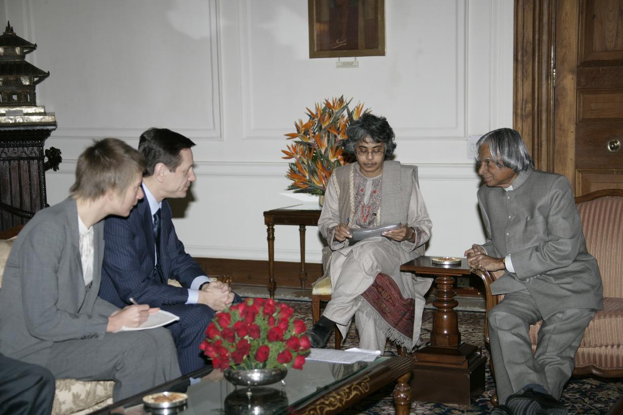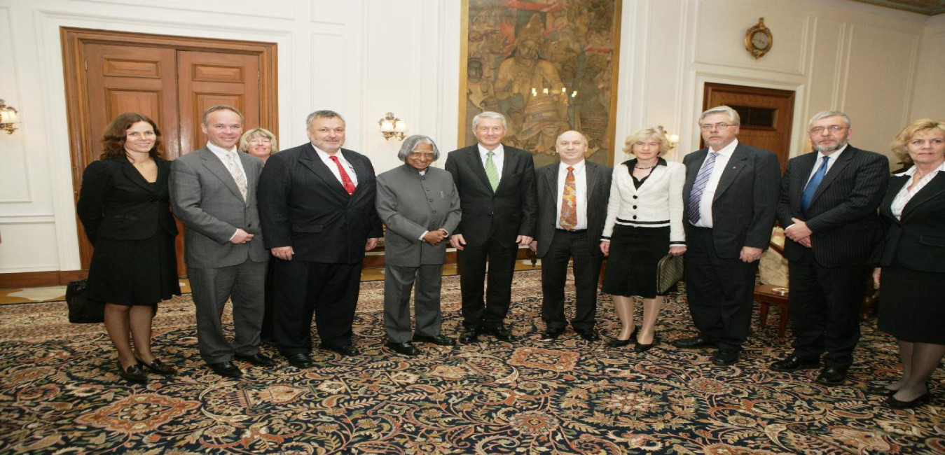 The Norwegian Parliamentary Delegation led by HE Mr Thorbojorn Jagland, President of the Storting (Parliament) of the Kingdom of Norway calling on the President of India, Dr A P J Abdul Kalam at the Morning Room of Rashtrapati Bhavan in New Delhi on March 12, 2007
