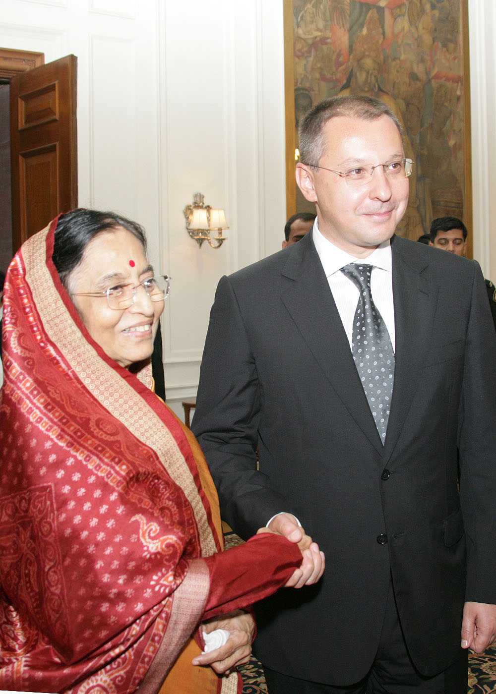 The Prime Minister of Bulgaria, HE Mr Sergei Stanishev calling on the President of India, Smt Pratibha Devisingh Patil at the Morning Room of Rashtrapati Bhavan in New Delhi on Sep 12, 2007