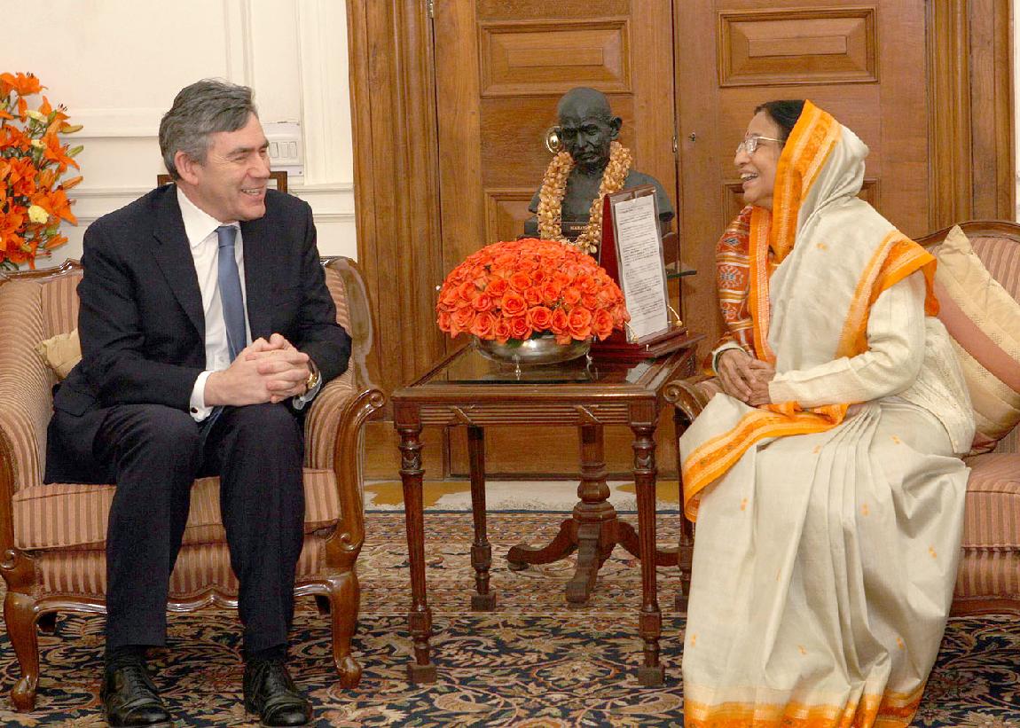 The President of India, Smt Pratibha Devisingh Patil interacting with Prime Minister of United Kingdom, HE Mr Gordon Brown at Rashtrapati Bhavan in New Delhi on Jan 21, 2008