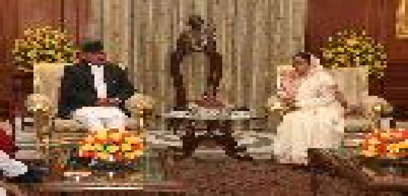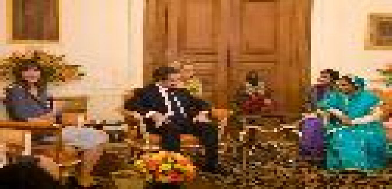 The HRH Prince of Wales, HE Mr Charles Philip Arthur George and his wife Mrs Camilla Rosemary calling on the President of India, Smt Pratibha Devisingh Patil at Rashtrapati Bhavan in New Delhi on Oct 02, 2010