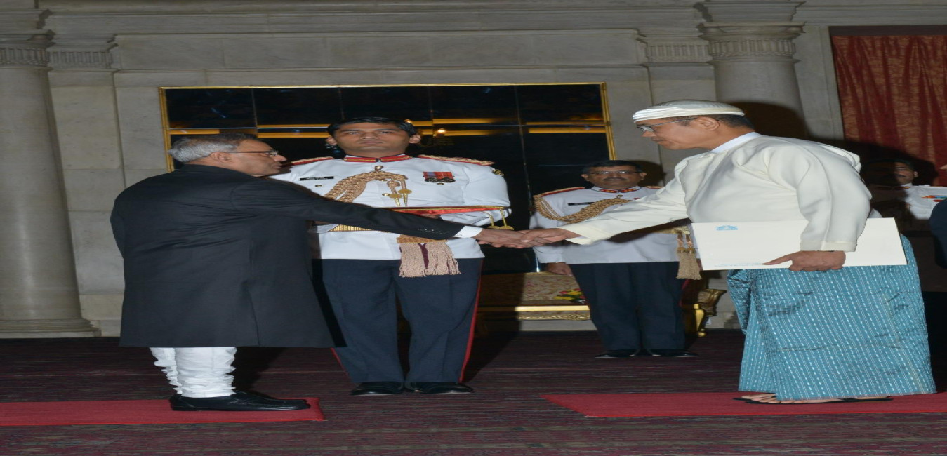 The President of India Shri Pranab Mukherjee Meeting with HE U Aung Khin Soe Ambassador-Designate of the Republic of the Union of Myanmar on July 17, 2013