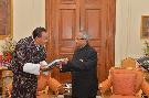 The President of India Shri Pranab Mukherjee Meeting with HE Brigadier General Patrick Rumedyo Tembo (Retd) High Commissioner-Designate of the Republic of Zambia on July 17, 2013