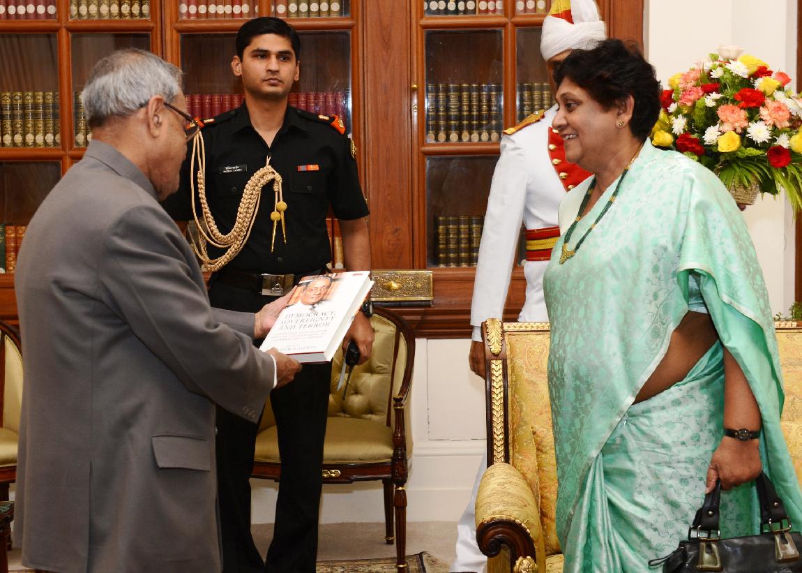 The Former External Affairs Minister, Mrs Suganthie Kadirgamar calling on the President of India, Shri Pranab Mukherjee at Rashtrapati Bhavan in New Delhi on March 06, 2013