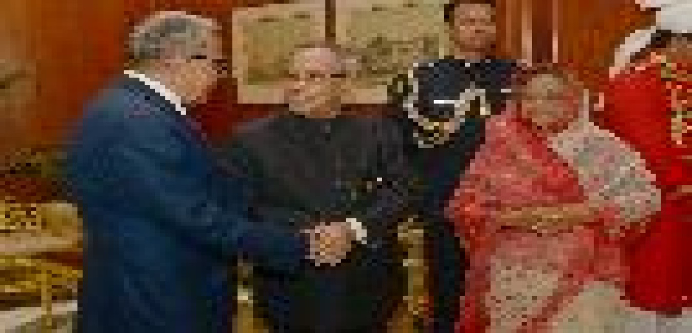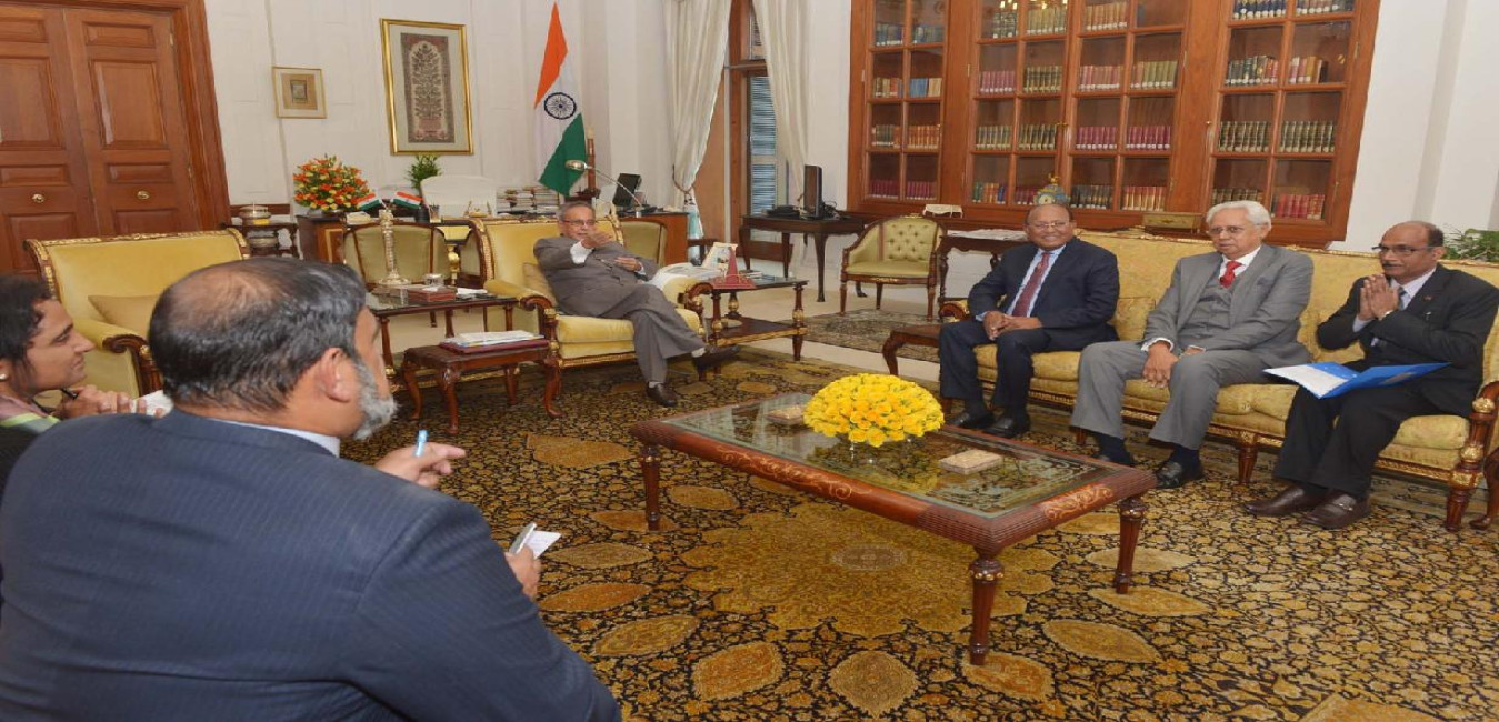 The President of the People's Republic of Bangladesh, HE Mr Abdul Hamid calling on the President of India, Shri Pranab Mukherjee at the North Drawing Room of Rashtrapati Bhavan in New Delhi on Dec 19, 2014