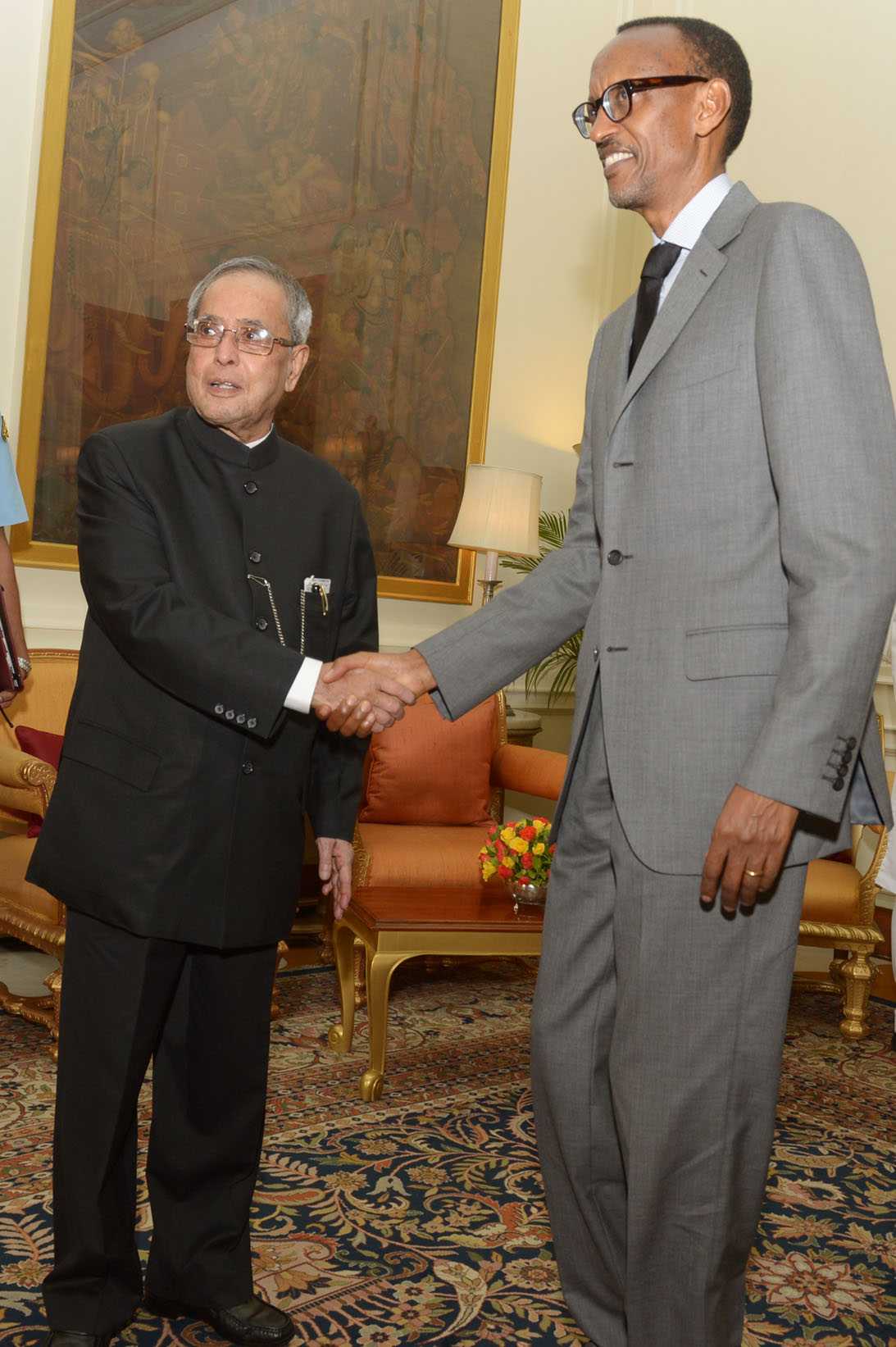 The President of the Republic of Rwanda, HE Mr Paul Kagame calling on the President of India, Shri Pranab Mukherjee at Rashtrapati Bhavan in New Delhi on Nov 05, 2014