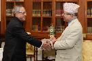 The Former Prime Minister of Nepal, Shri Madhav Nepal calling on the President of India, Shri Pranab Mukherjee at Rashtrapati Bhavan in New Delhi on Nov 19, 2014