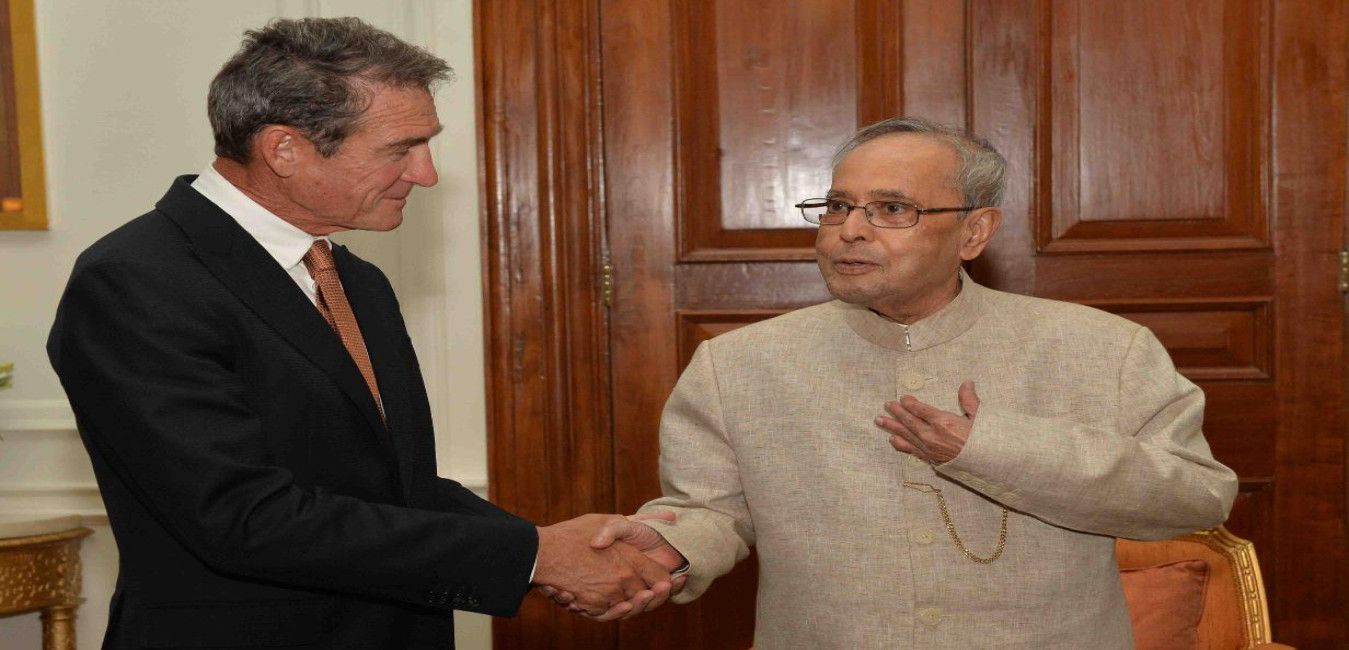 The Australian Ultra-marathon long-distance runner and former Member of the Australian Parliament, Mr. Pat Farmer calling on the President of India, Shri Pranab Mukherjee, at Rashtrapati Bhavan on March 31, 2016.