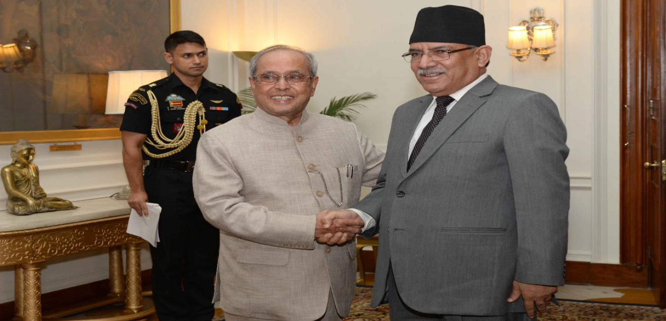 The Prime Minister of Nepal, Rt. Hon'ble Pushpa Kamal Dahal 'Prachanda' calling on the President of India, Shri Pranab Mukherjee, at Rashtrapati Bhavan on September 16, 2016.
