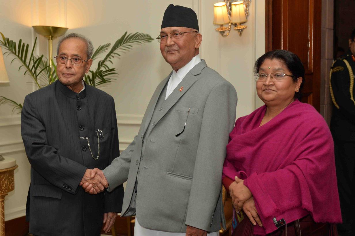 The Prime Minister of Nepal, Rt. Honourable, Mr. K.P. Sharma Oli calling on the President of India, Shri Pranab Mukherjee, at Rashtrapati Bhavan on February 20, 2016.