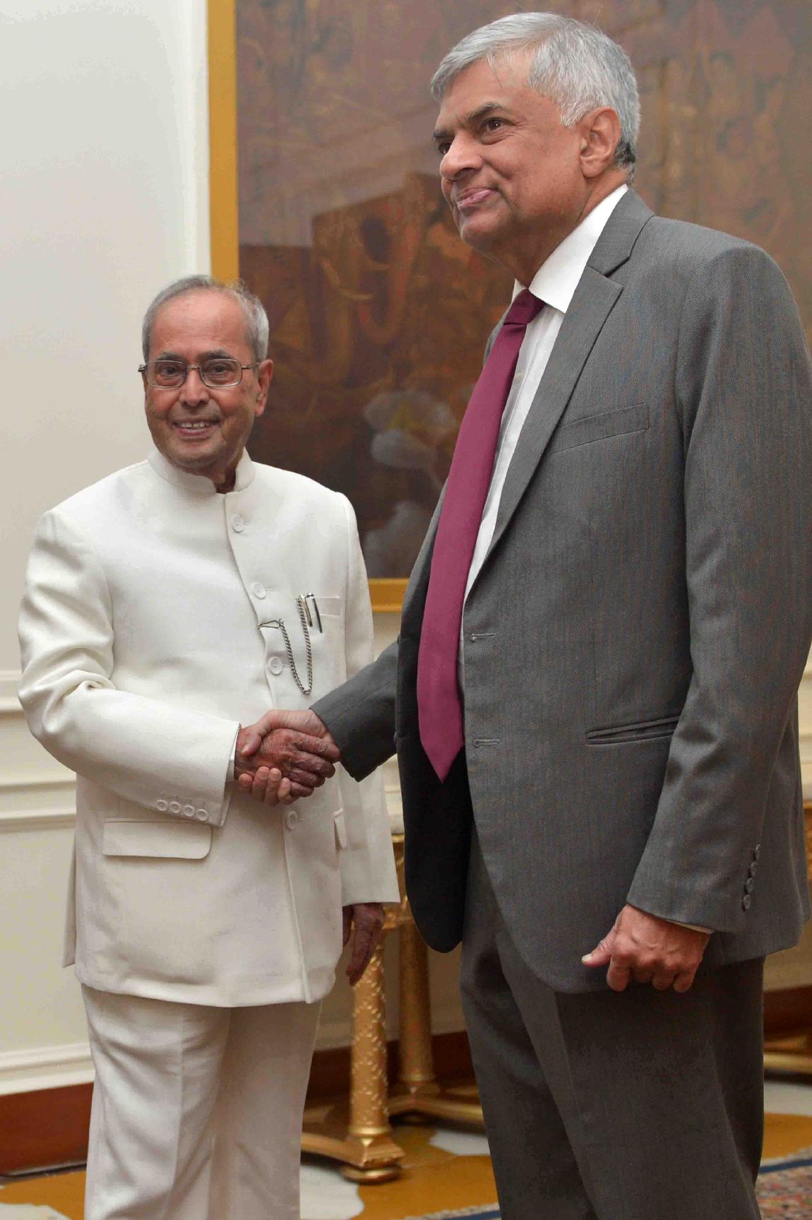 The Prime Minister of Sri Lanka, H.E. Mr. Ranil Wickremesinghe calling on the President of India, Shri Pranab Mukherjee, at Rashtrapati Bhavan on October 05, 2016.