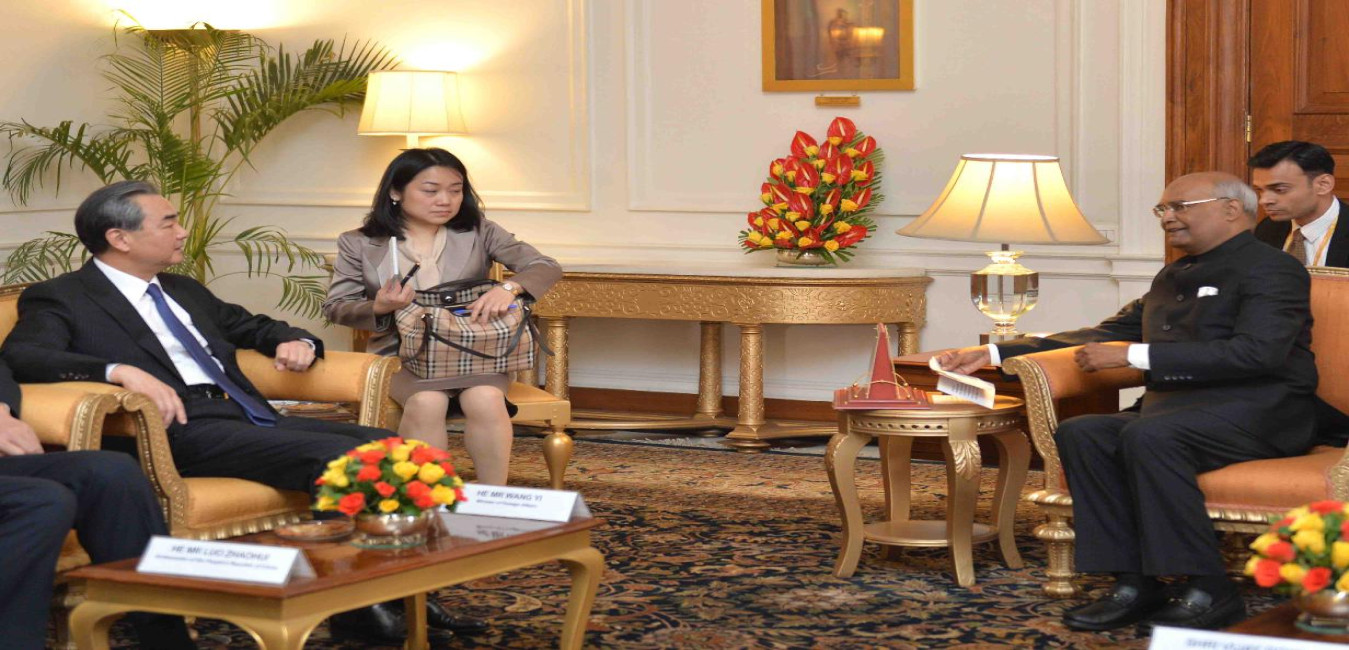 The Foreign Minister of the Poeple's Republic of China, H.E. Mr. Wang Yi calling on the President of India, Shri Ram Nath Kovind, at Rashtrapati Bhavan on December 11, 2017.