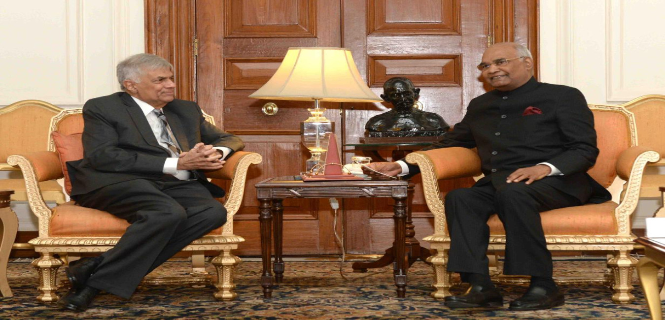 The Prime Minister of Sri Lanka, H.E. Mr. Ranil Wickremesinghe calling on the President of India, Shri Ram Nath Kovind, at Rashtrapati Bhavan on November 23, 2017.