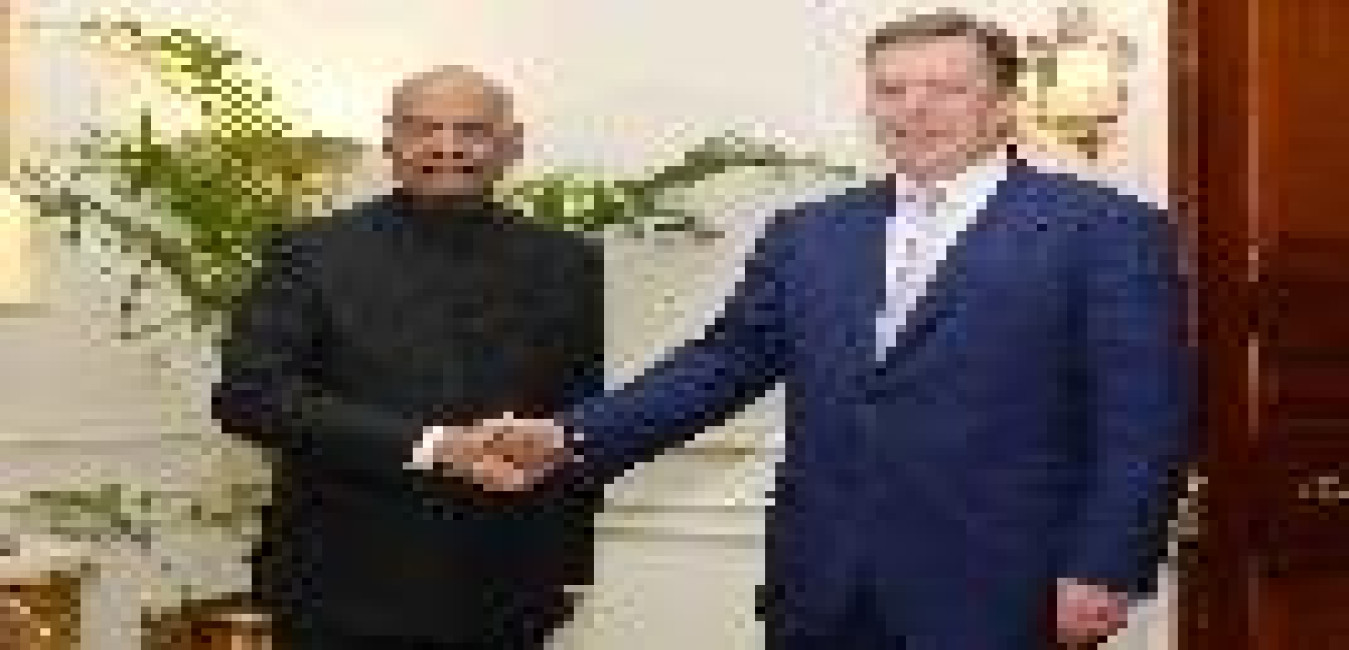 The Prime Minister of the Republic of Latvia, H.E. Mr. Maris Kucinskis calling on the President of India, Shri Ram Nath Kovind, at Rashtrapati Bhavan on November 03, 2017.