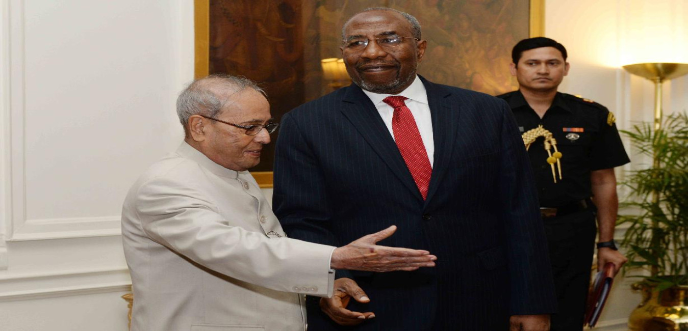 The Prime Minister of Uganda, H.E. Mr. Ruhakana Rugunda calling on the President of India, Shri Pranab Mukherjee, at Rashtrapati Bhavan on March 09, 2017.