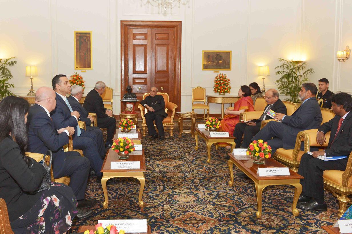 The President of India, Shri Pranab Mukherjee meeting with the Parliamentary delegation from Namibia led by Hon. Prof. Peter H. Katjavivi, Speaker of the National Assembly of the Parliament of Namibia, at Rashtrapati Bhavan on March 28, 2017.