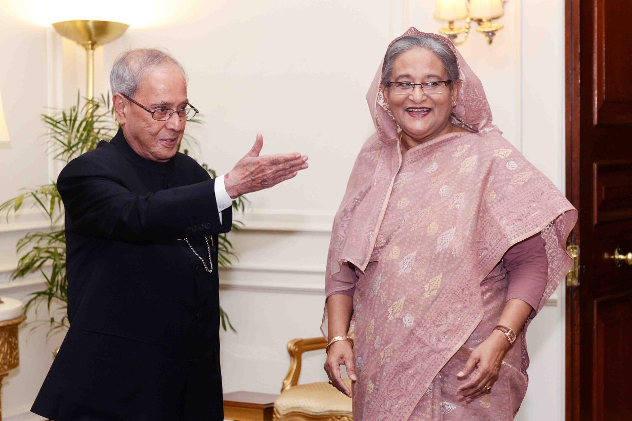 The Prime Minister of Bangladesh, H.E. Sheikh Hasina calling on the President of India, Shri Pranab Mukherjee, at Rashtrapati Bhavan on April 09, 2017.