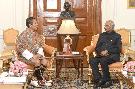 The Minister of Foreign Affairs of the Republic of Algeria, H.E. Mr. Abdelkader Messahel calling on the President of India, Shri Ram Nath Kovind, at Rashtrapati Bhavan on January 31, 2019.