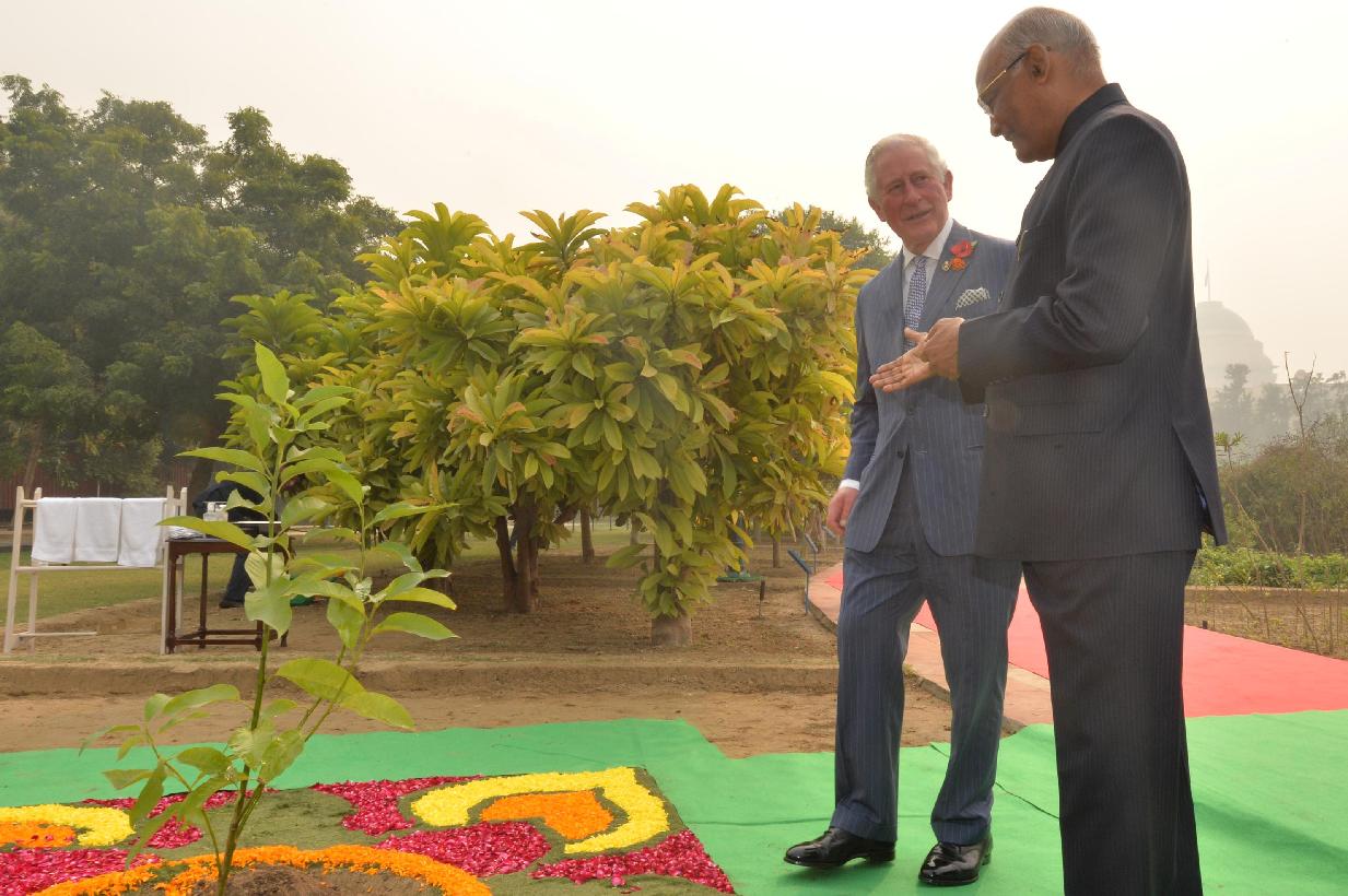 The President of India, Shri Ram Nath Kovind along with His Royal Highness The Prince of Wales during the plantation of Champa tree, at Herbal Garden of Rashtrapati Bhavan on November 13, 2019.
