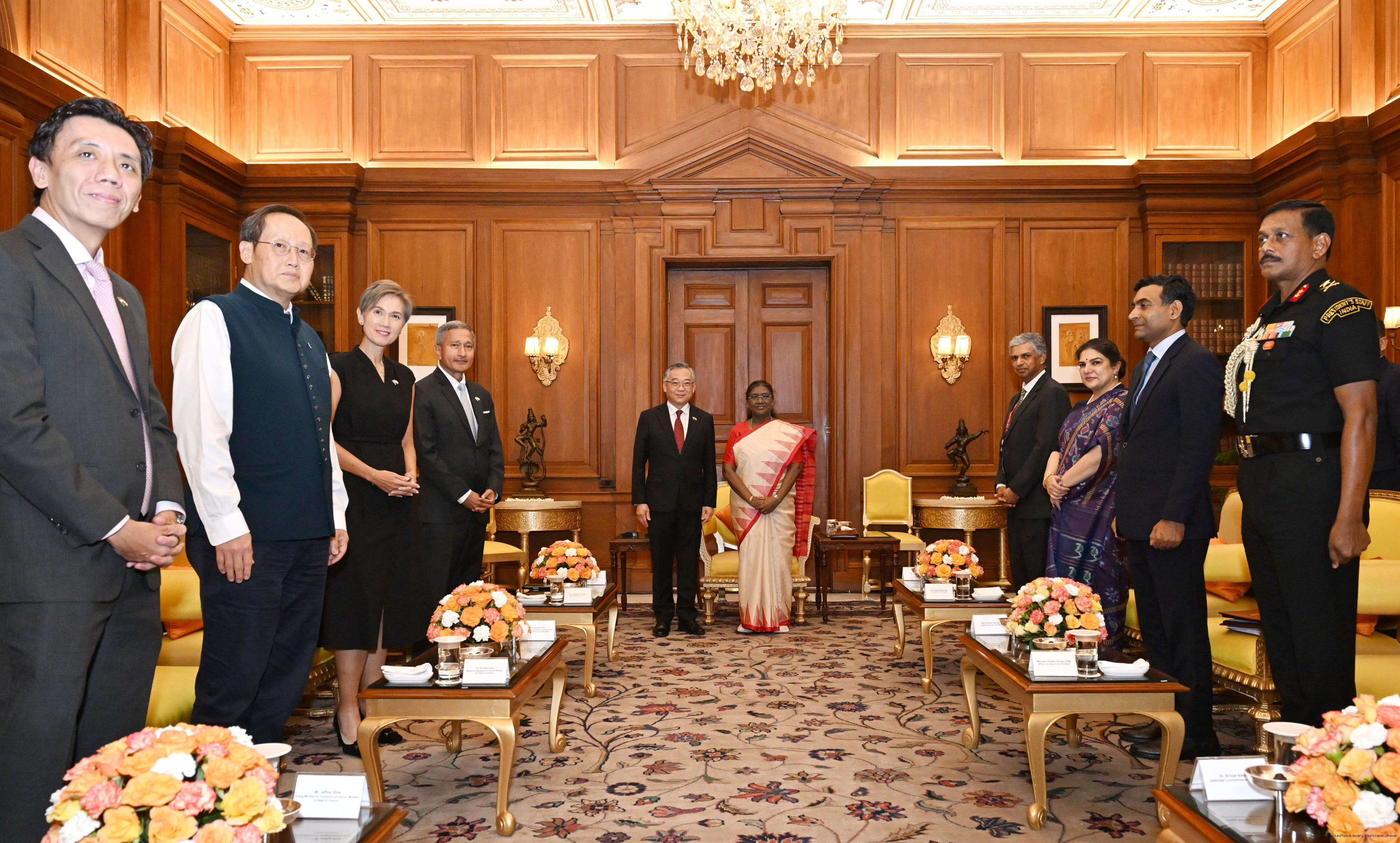 A Ministerial Delegation from Singapore, led by H.E. Mr Gan Kim Yong, Deputy Prime Minister and Minister for Trade and Industry of Singapore, called on the President of India, Smt Droupadi Murmu at Rashtrapati Bhavan on August 13, 2025.