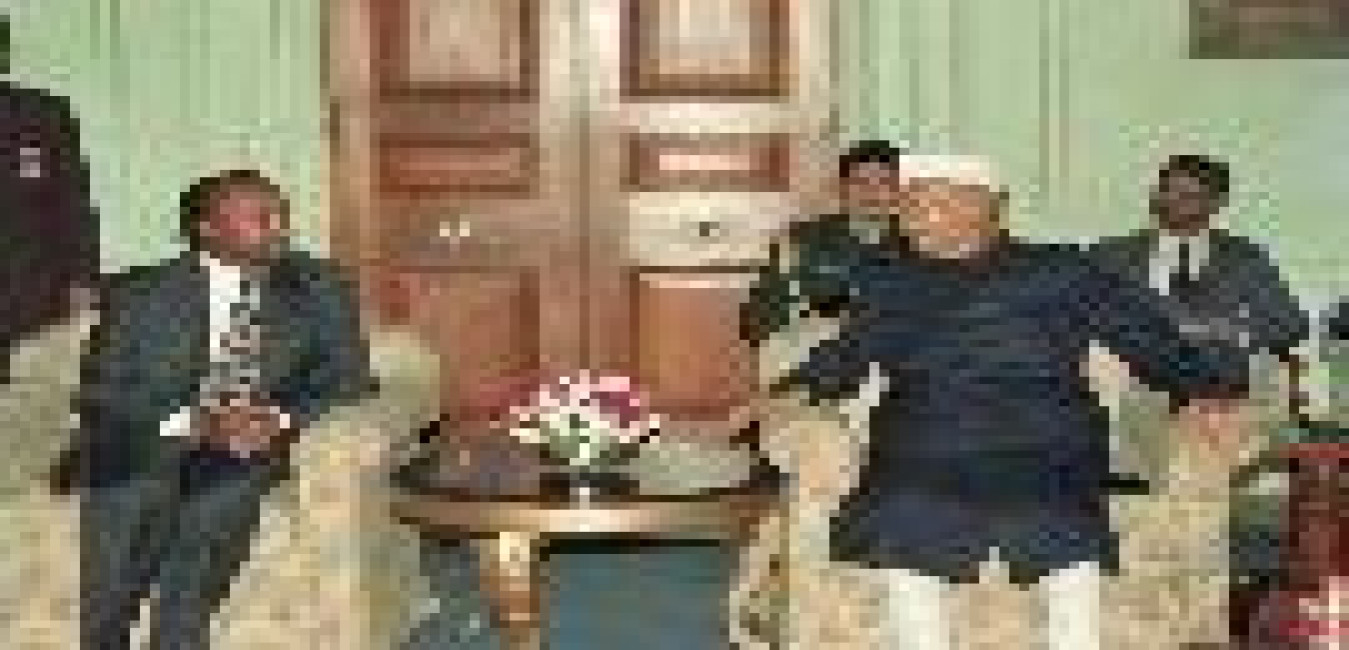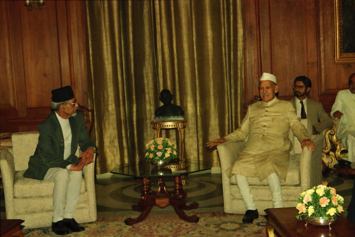 The President of India, Dr. Shankar Dayal Sharma meeting with H.E. Mr. Madhu Kumar Nepal, Deputy Prime Minister and Minister for Foreign Affairs & Defence of Nepal at Rashtrapati Bhavan in New Delhi on February 07, 1995.