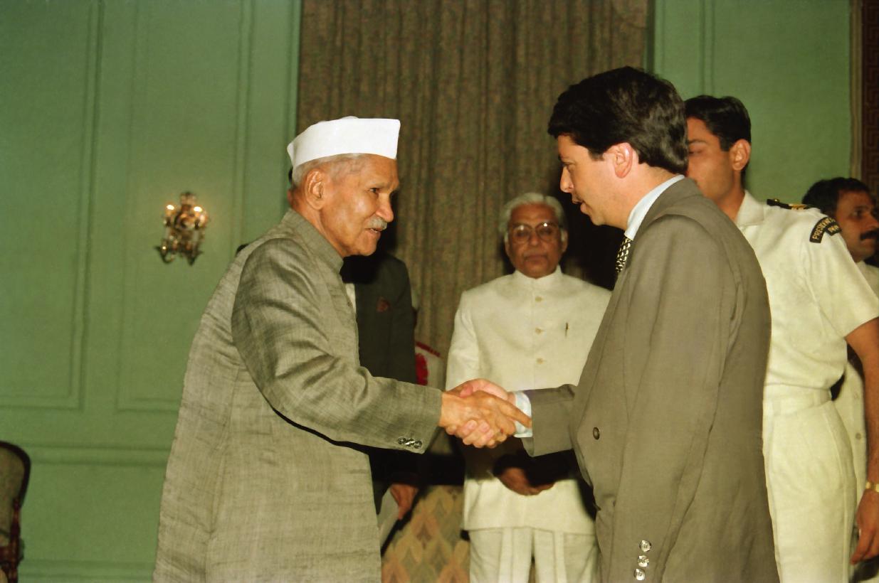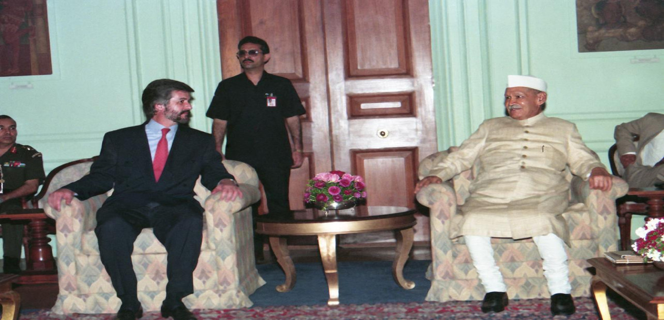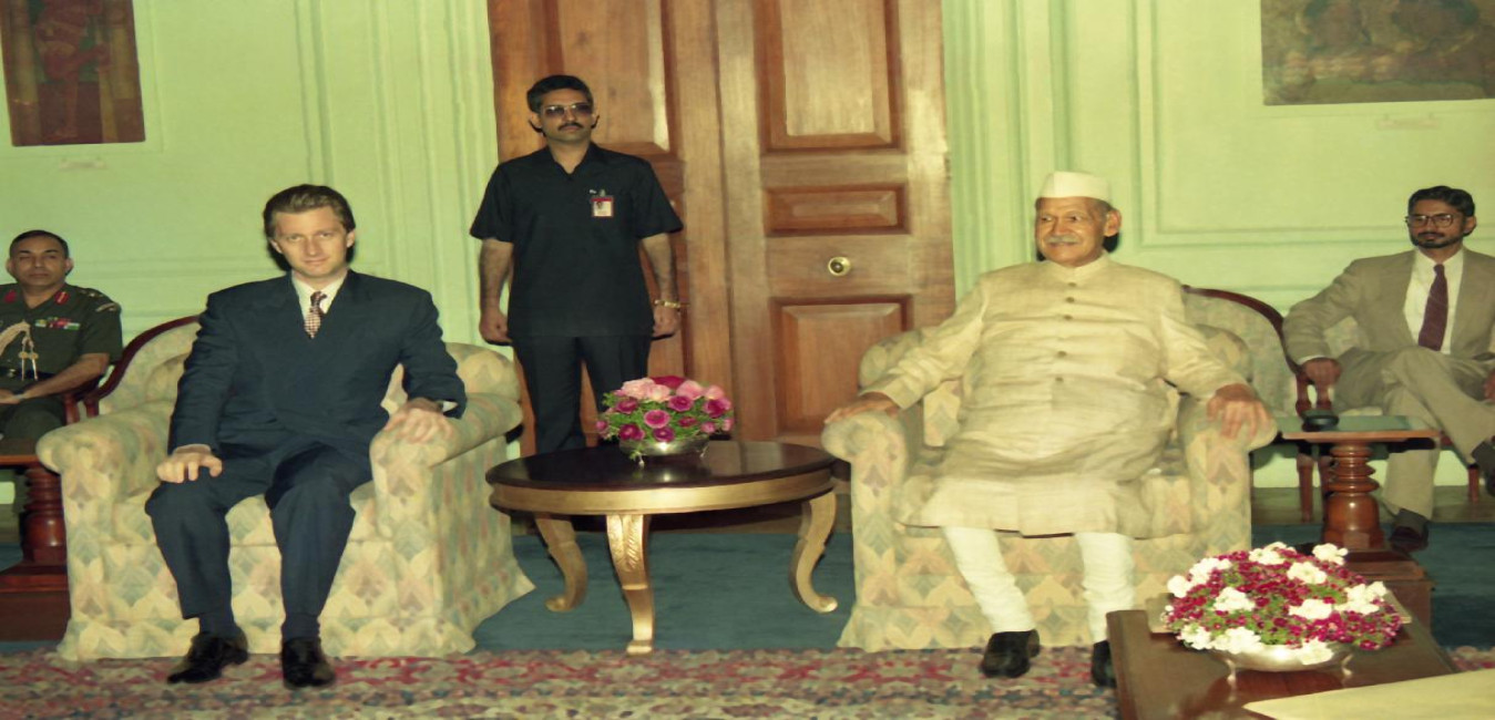 The President of India, Dr. Shankar Dayal Sharma meeting with His Royal Highness Crown Prince Philippe of Belgium at Rashtrapati Bhavan in New Delhi on March 27, 1995.